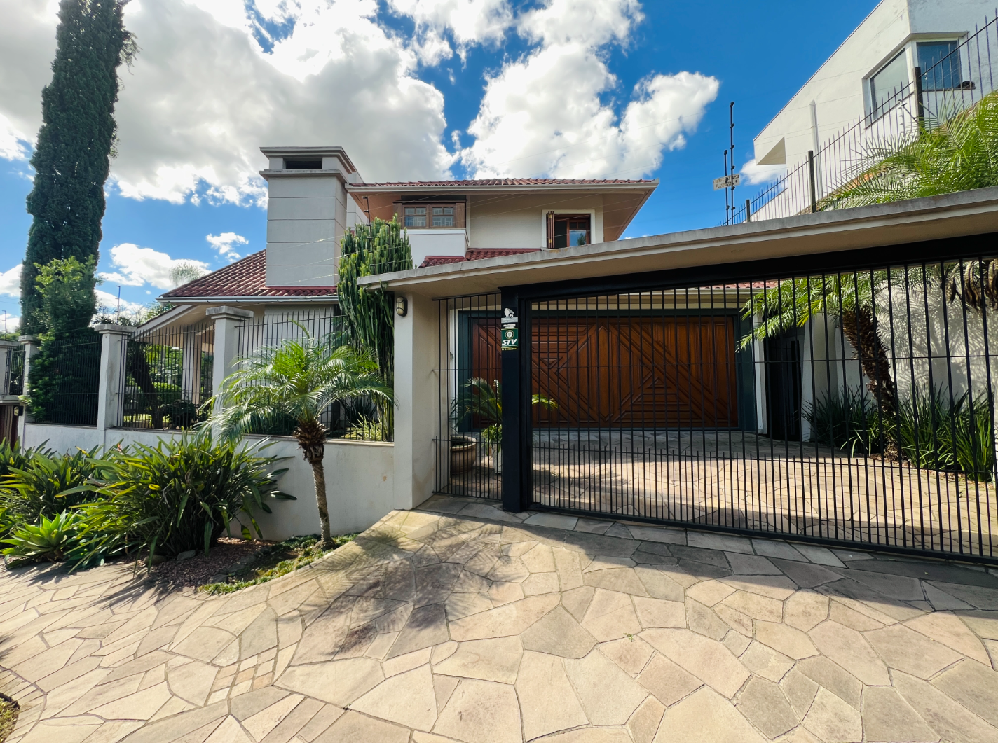 Ampla casa com 3 dormitórios sendo 1 suíte, área social integrada com cozinha, espaço gourmet com churrasqueira, sala de jantar, estar com pé direito duplo e lareira.A casa ainda conta com lavabo, 2 banheiros sociais, lavanderia, pátio arborizado e 3 vagas de garagem( 2 cobertas + 1 externa).